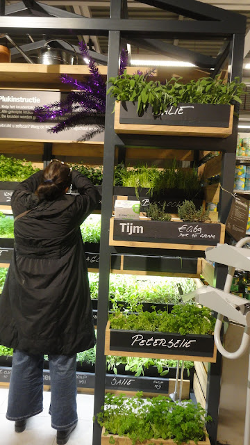 Entretanto, chama-me sempre a atenção o que de diferente vai aparecendo no mercado e não podia deixar de vos mostrar uma ida ao supermercado (o Continente lá do sítio), onde foi inaugurado recentemente um espaço para ervas aromáticas, em canteiros, em que o cliente corta apenas o que precisa.