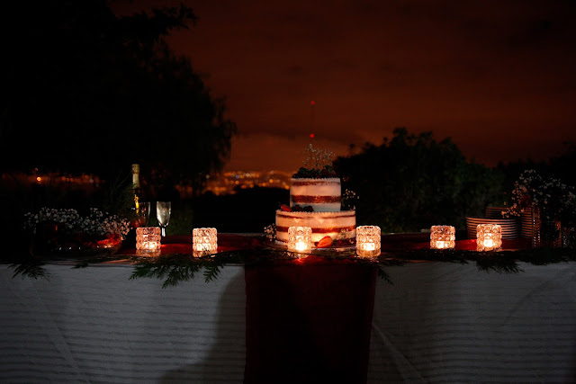 O casamento que começou com um "vamos ali assinar o papel e depois vamos jantar todos", acabou por ter todos os ingredientes de um casamento planeado com meses de antecedência, só que não foi. Poderia entrar em detalhes que ocupariam algumas páginas para explicar toda a história mas não vos vou aborrecer com tanto palavreado. Para resumir direi que a minha princesa e o seu principe escolheram como cores de eleição o bordeaux e o verde, as cores do Natal, numa linha simples de natura.