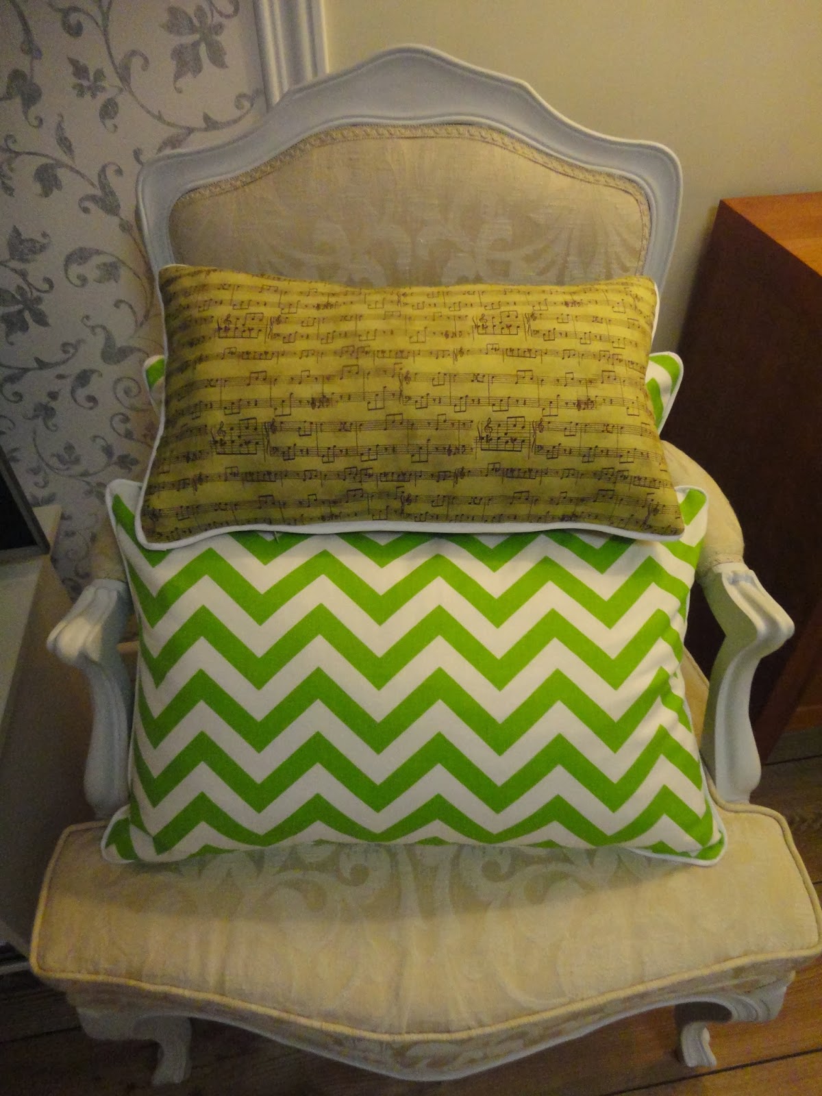 The bedroom and living room are my favorite spaces! The tones, the chair equal to wallpaper, the beautiful wall paper, carpets and well, all the details ...